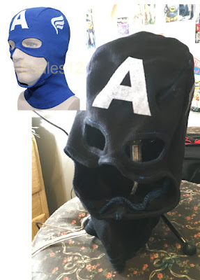 | Above: Using a commercially available Captain America pull-over wool mask, I brought out the black dye, to get started on Hawkeye's head mask, but... |